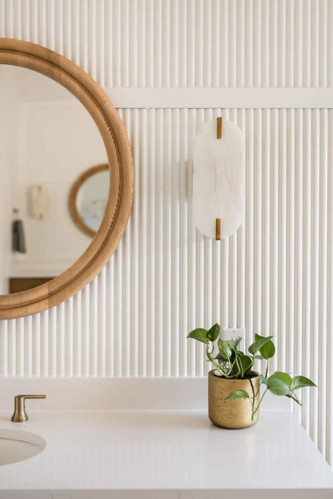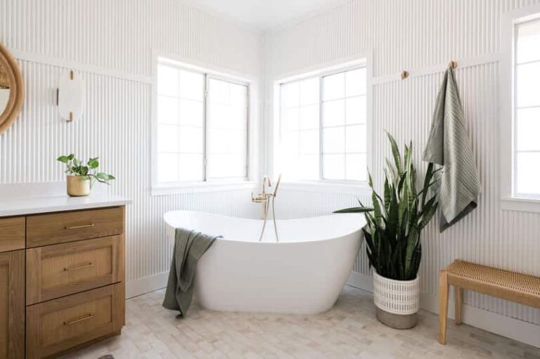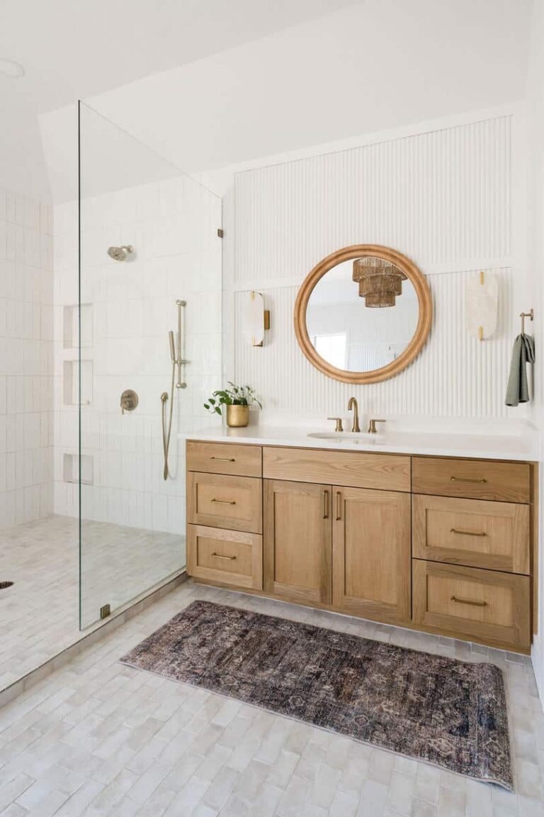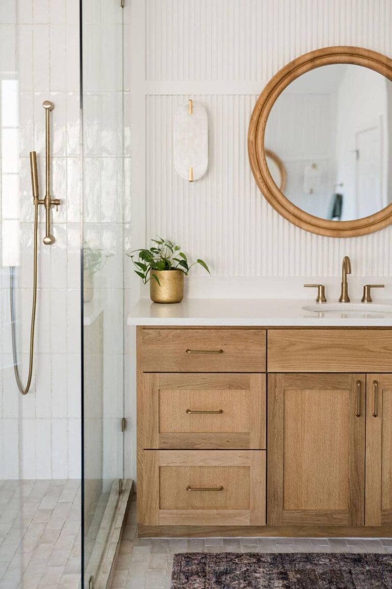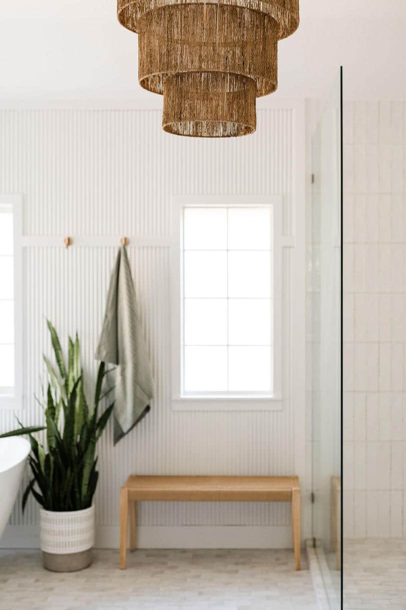 Deliverables: We incorporated natural wood tones and soft white walls to maintain an airy and calm ambiance. The centerpiece is a freestanding tub, accompanied by a walk-in shower with brass fixtures. The light-filled space is accented by elegant, woven lighting fixtures and lush greenery to evoke the relaxing atmosphere the client envisioned.